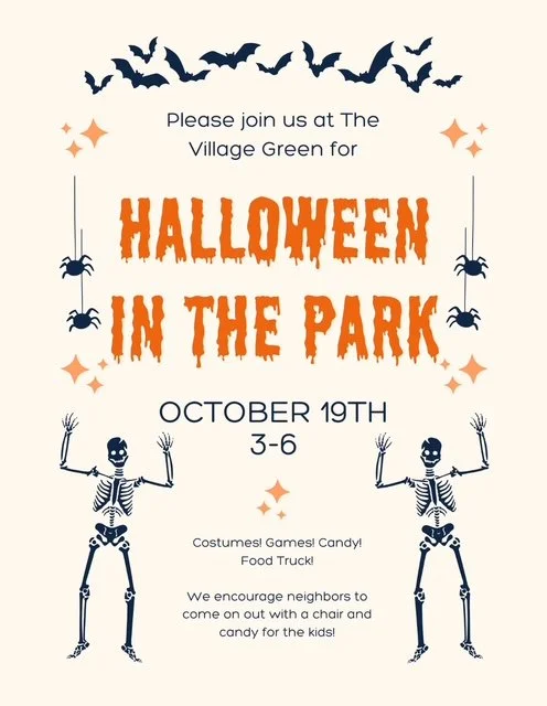 Annual Parkway Village Fall Festival at the Village Green park will be Sunday, October 19 from 3pm-6pm. Come join us for crafts, games and fun!